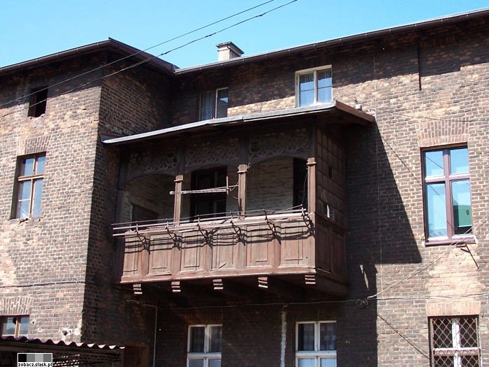 Śródmieście. Interesujący drewniany balkon na tyłach kamienicy