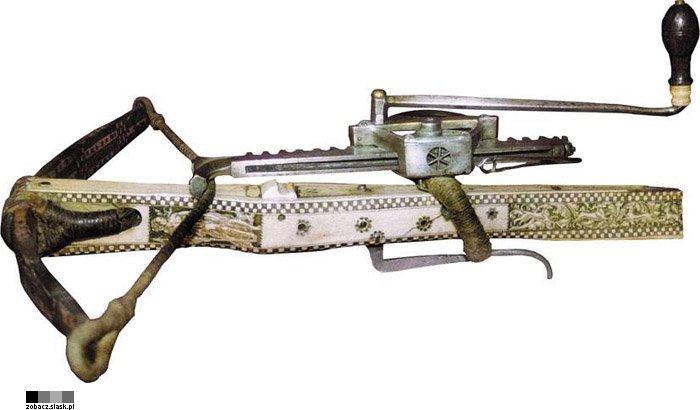 Muzeum Zamkowe w Pszczynie, Zbrojownia, Kusza renesansowa, Niemcy płd., 1543 r. i lewar do naciągania kuszy (XVI w.), fot. Jan Kruczek