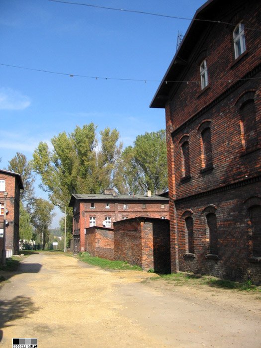 Paruszowiec. Zabytkowe familoki z chlewikami przy ul. Przemysłowej